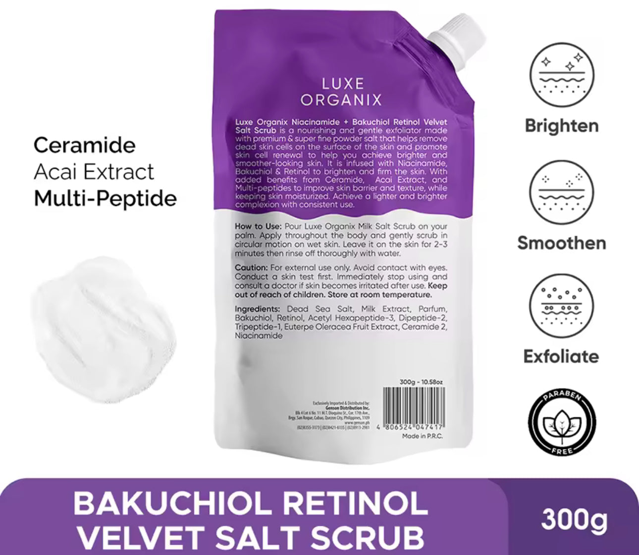 LUXE ORGANIX Niacinamide + Bakuchiol Retinol Velvet Salt Scrub 300g