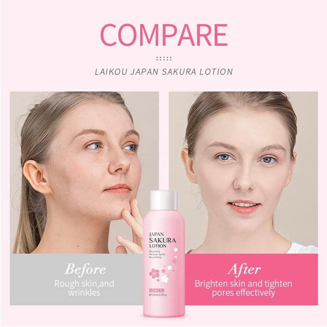 Sakura Face Lotion (100ml) is a scientifically formulated moisturizing essence designed to improve skin texture and hydration. This toner lotion features Vitamin C, which enhances skin brightness while supporting pore minimization. Its hydrating and nourishing properties contribute to the daily repair of skin, ensuring a balanced and healthy complexion.